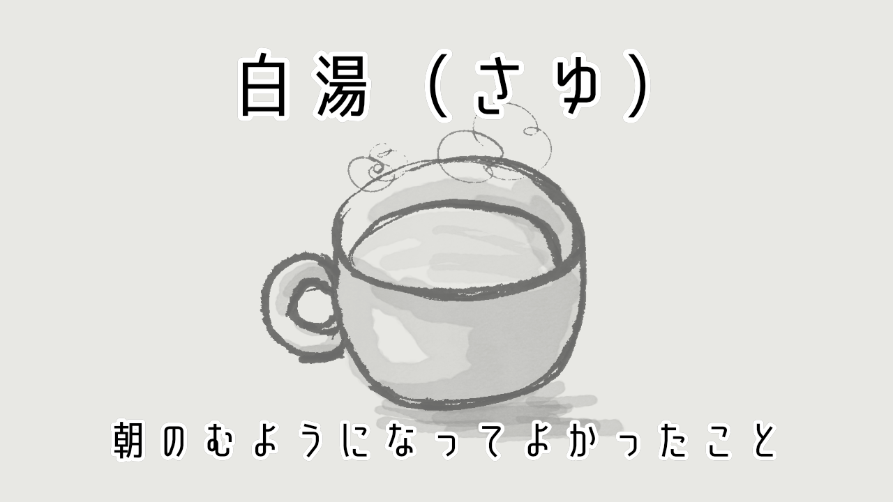 朝、ハーブティを飲む習慣をしばらく続けていたけど、ある日とつぜん買っていたハーブティーが値上がりしました。それをきっかけに「そういえば白湯が体に良いとか聞くけどどうなんだろう?」と白湯のことを思い出し、白湯を飲むことにしてみました。